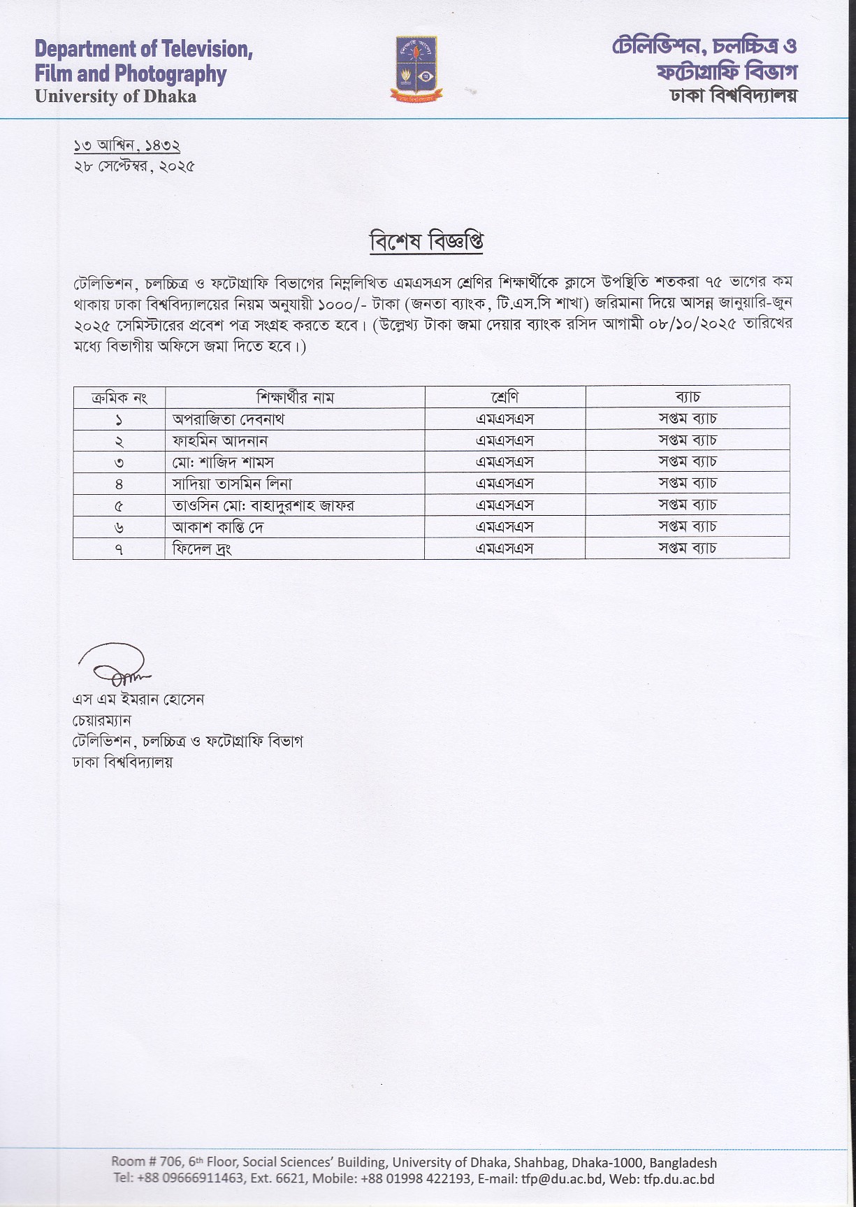 বিশেষ বিজ্ঞপ্তি: এমএসএস ৭ম ব্যাচ