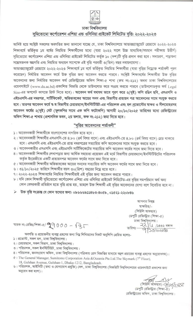বিজ্ঞপ্তি: সুমিতোমো কর্পোরেশন এশিয়া এন্ড ওসিনিয়া প্রাইভেট লিমিটেড বৃত্তি: ২০২২-২০২৩